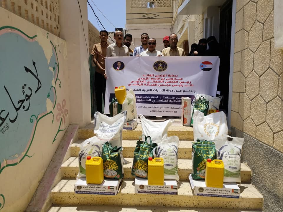 دشنت منسقية المجلس الانتقالي الجنوبي في جامعة حضرموت، اليوم الثلاثاء، توزيع السلال الغذائية على منتسبي منسقيات المجلس في كليات الجامعة، بتوجيهات الرئيس القائد عيدروس الزُبيدي، رئيس المجلس الانتقالي الجنوبي، وبدعم من دولة الإمارات العربية المتحدة الشقيقة، وبتنفيذ هيئة الإغاثة والأعمال الإنسانية بالمجلس.