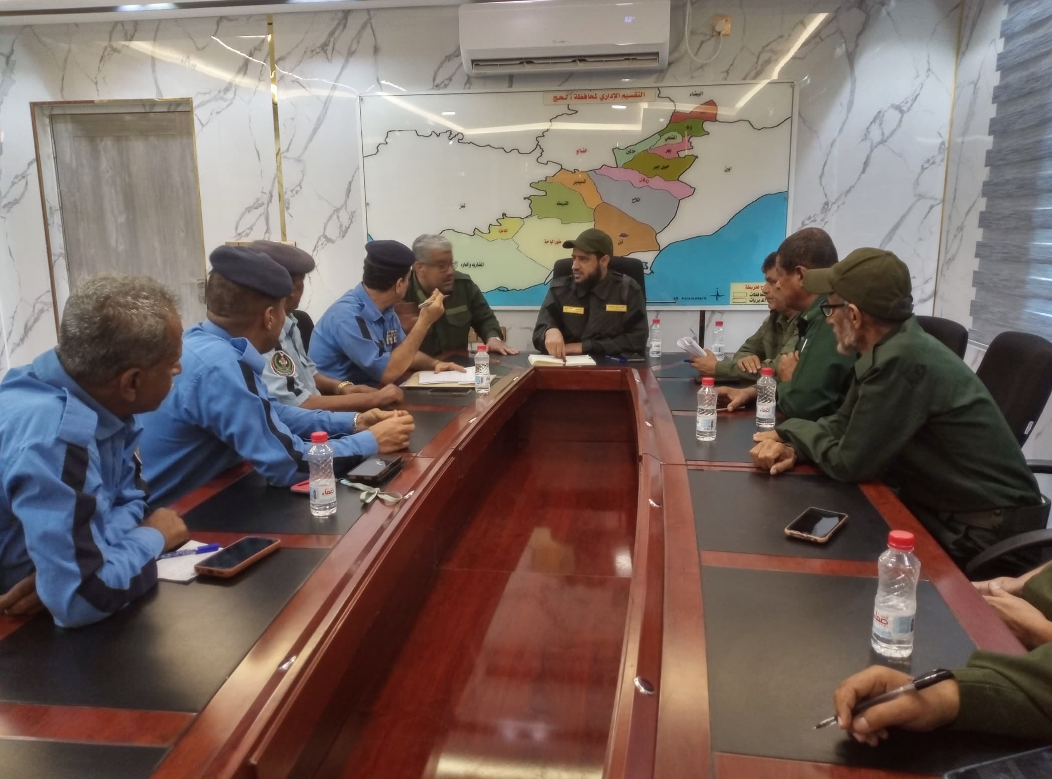 عقد العميد ناصر الشوحطي، مدير أمن محافظة لحج، صباح اليوم اجتماعًا أمنيًا موسعًا ضم عددًا من القيادات الأمنية والإدارية في المحافظة، بهدف تقييم سير العمل، ومعالجة التحديات، وتعزيز التنسيق بين مختلف الأقسام والوحدات الأمنية.