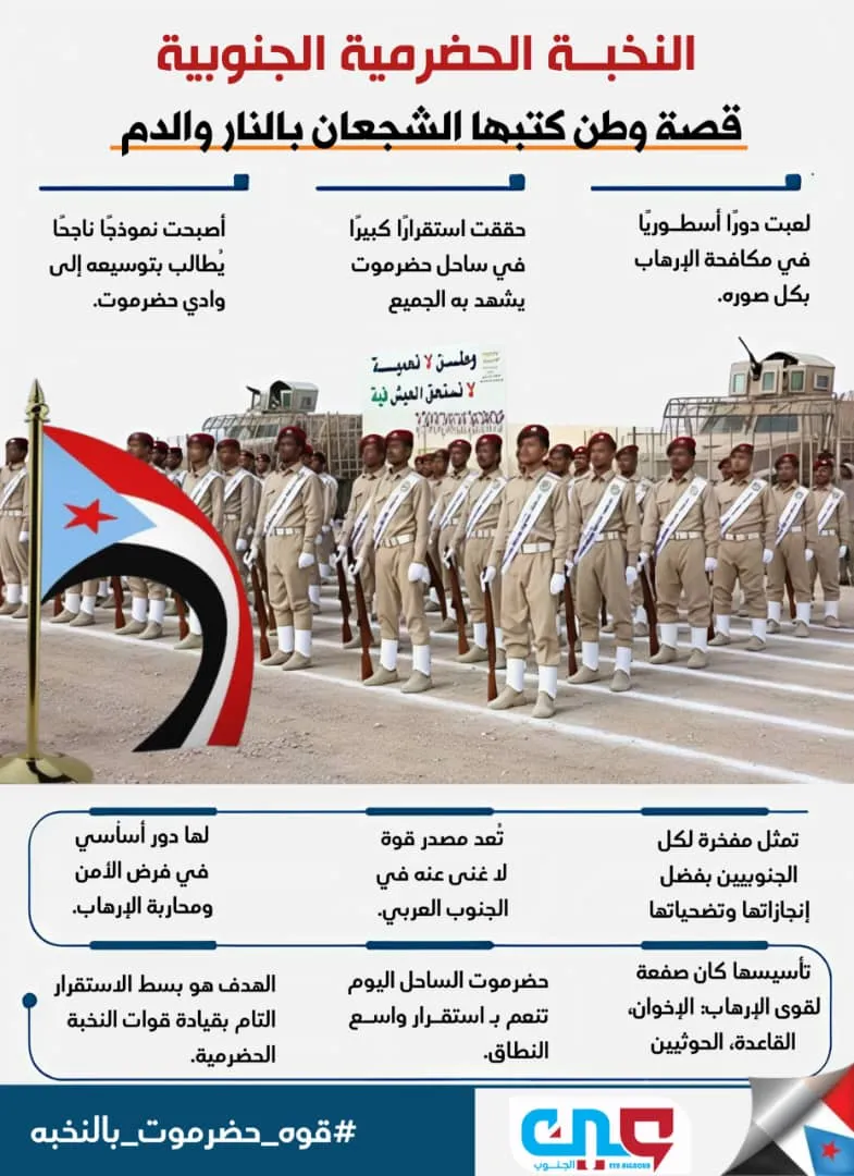 وتأتي الحملة الإلكترونية تحت وسم #قوه_حضرموت_بالنخبه تأكيداً جماعياً على دعمهم الكامل لقوات النخبة، ورفضهم لأي تدخلات خارجية تهدف لتقويض الدور الأمني للنخبة أو تفريغه من مضمونه الوطني. فـ حضرموت تحتاج إلى وعي أبنائها والتفافهم حول نخبتهم، وعدم السماح بتكرار سيناريوهات الخراب التي عانت منها بعض المناطق الأخرى. فالنخبة الحضرمية هي قوة أمنية، ومشروع وطني جنوبي يحمي الحاضر ويؤسس لمستقبل أكثر أماناً واستقراراً.