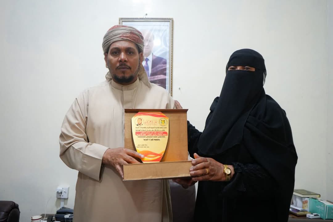 كرّمت جمعية قلنسية النسوية للحرف والمصنوعات اليدوية، محافظ محافظة أرخبيل سقطرى المهندس رأفت الثقلي، بدرع الشكر والعرفان، تقديراً لدعمه السخي والمستمر لأنشطة الجمعية وتمكين المرأة الحرفية في ممارسة نشاطهافي المجتمع.