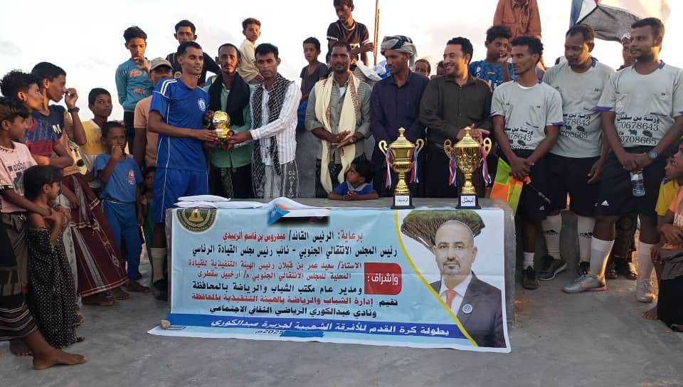 اختتمت إدارة الشباب والرياضة بالهيئة التنفيذية للقيادة المحلية للمجلس الانتقالي الجنوبي في محافظة سقطرى، اليوم الثلاثاء، منافسات بطولة الفرق الشعبية بجزيرة عبدالكوري، والتي أقيمت تحت إشراف دائرة الشباب والرياضة بالأمانة العامة لهيئة رئاسة المجلس الانتقالي.