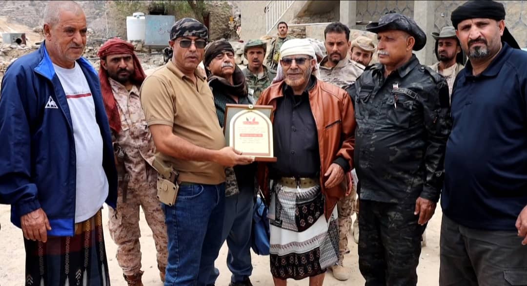 كرمت قيادة السلطة المحلية والمجلس الانتقالي الجنوبي في مديرية الشعيب بمحافظة الضالع، اليوم، المناضل الأكتوبري مطهر مثنى موسى، حيث تم منحه “درع الوفاء”، في زيارة خاصة إلى منزله الكائن بمنطقة الصلئة، تقديراً لدوره الوطني والنضالي المشهود في مختلف الميادين.