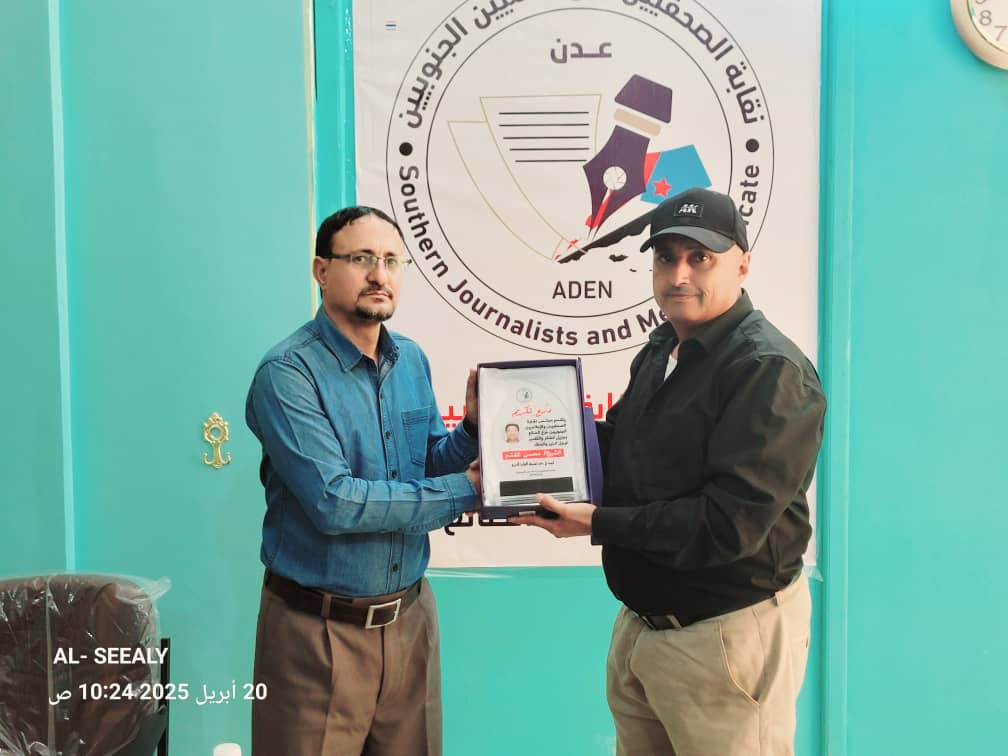 هذا وكان قد سبق التكريم لقاء وديا مع منتدى القشم الثقافي التنموي ممثل بالدكتور محمد ناشر سعيد المسؤول التنظيمي للمنتدى في مقر النقابة.