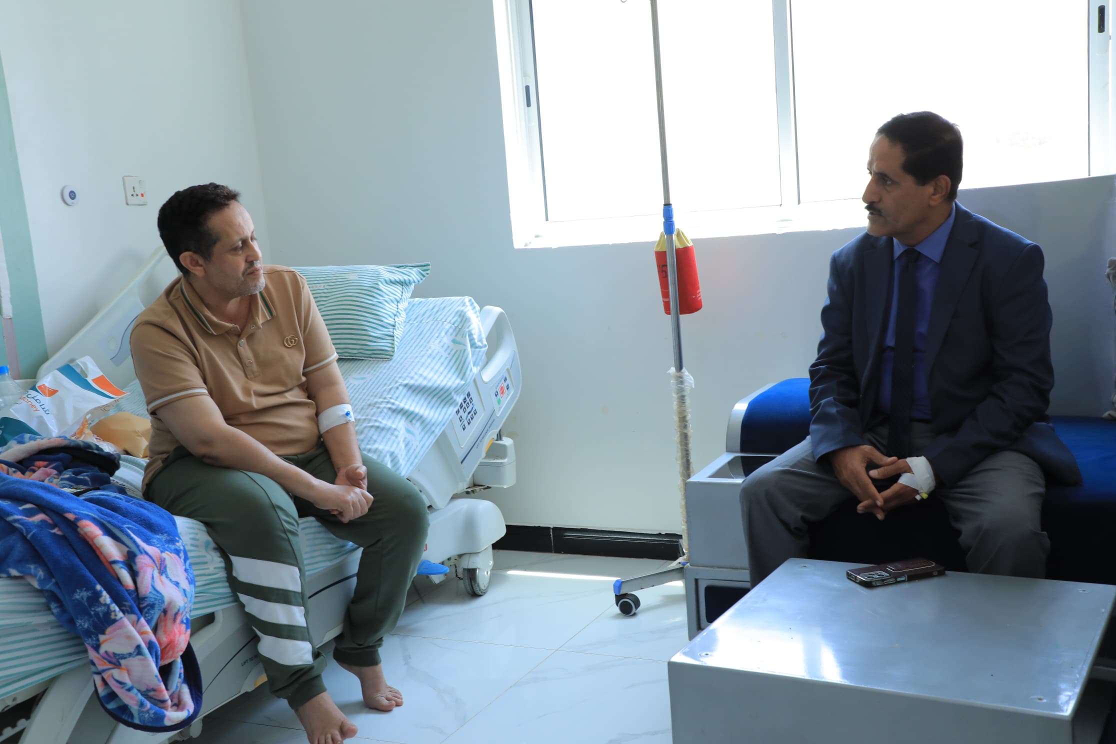من جانبه عبّر رئيس تنفيذية انتقالي لحج، عن شكره وتقديره على هذه الزيارة والاطمئنان على حالته الصحية ومتابعته لها.