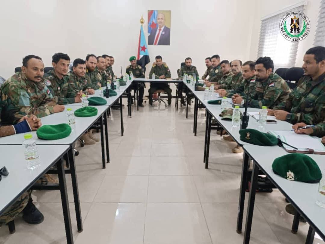 ترأس العميد جلال الربيعي، أركان قوات الحزام الأمني وقائد قوات الحزام الأمني في العاصمة عدن، الاجتماع الدوري لقادة القطاعات الأمنية ومدراء الإدارات، بحضور مستشار القائد العميد أحمد طماح.