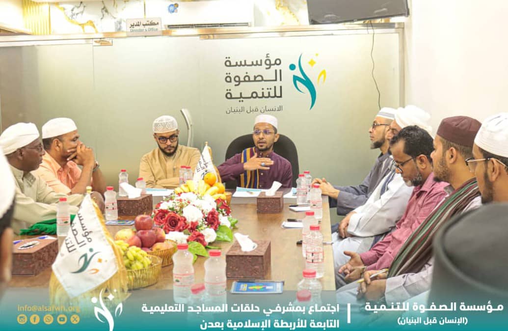 ترأس الأستاذ عمر سالم باصم، رئيس مؤسسة الصفوة للتنمية، اجتماعاً ضمّ مشرفي حلقات المساجد التابعة للأربطة الإسلامية بالعاصمة عدن، لمناقشة دعم الحلقات التعليمية بالمساجد وانشطتها المختلفة، للنهوض بها والمحافظة على استمراريتها، وتشجيع المعلمين، والإهتمام بالطلاب وتكوين جيل مسلح بالعلم والمعرفة على منهج الوسطية الشرعية والإعتدال الواعي، وانقاذ ما يمكن إنقاذه.