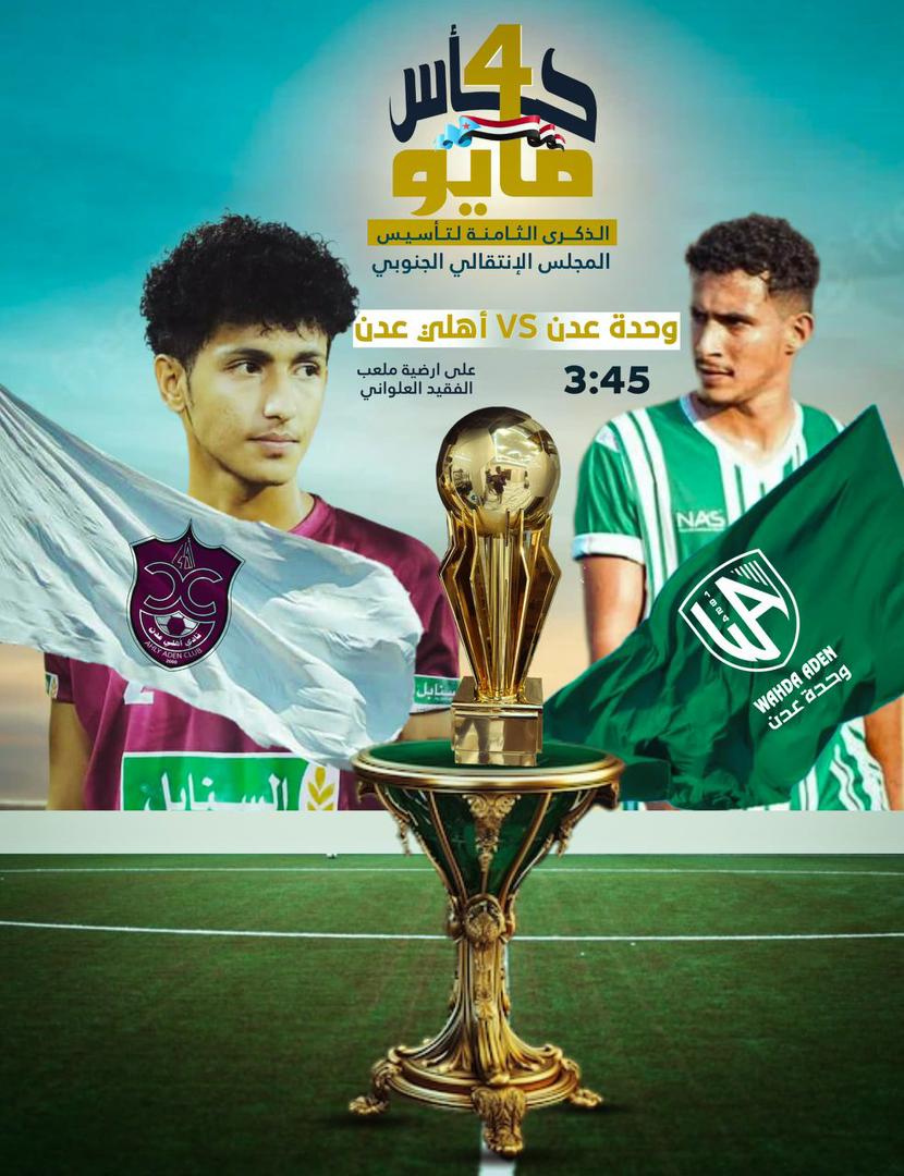 تنطلق عصر يوم غداً الاحد قمة من العيار الثقيل تجمع نادي وحدة عدن بنادي اهلي عدن ضمن كأس الذكرى الثامنة لإعلان عدن التاريخي.