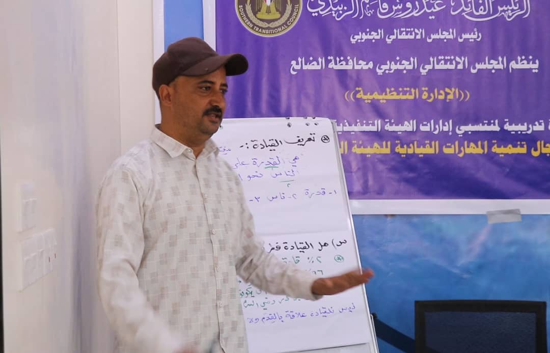 دشنت الإدارة التنظيمية في الهيئة التنفيذية للقيادة المحلية للمجلس الانتقالي الجنوبي بمحافظة الضالع، صباح اليوم الأحد، دورة تدريبية خاصة بتنمية المهارات القيادية، تستهدف مديري إدارات الهيئة التنفيذية بالمحافظة ورؤساء المجلس الانتقالي في مديريات المحافظة.