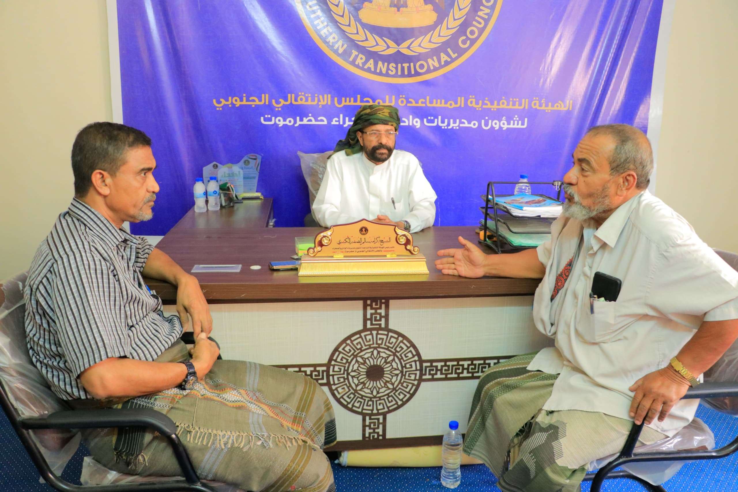 التقى نائب رئيس الهيئة التنفيذية المساعدة للمجلس الانتقالي الجنوبي لشؤون مديريات وادي وصحراء حضرموت، الشيخ كرامة بن سالم بن الصقير، اليوم الثلاثاء، برئيس الدائرة التنظيمية للاتحاد التعاوني الزراعي الجنوبي، جمعان سالم هديب.