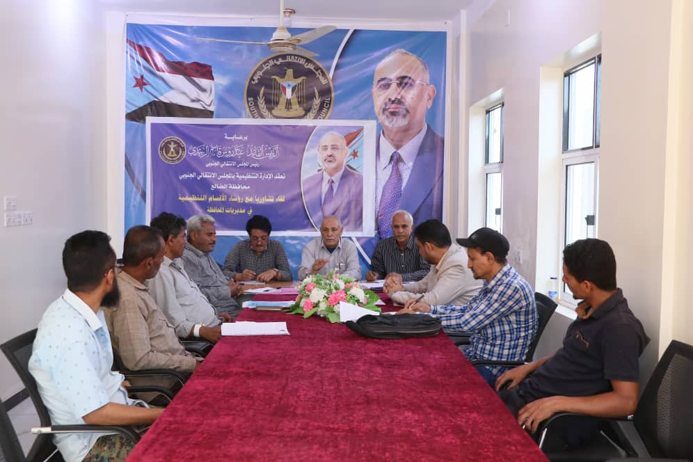 عقدت الإدارة التنظيمية بالهيئة التنفيذية للقيادة المحلية للمجلس الانتقالي الجنوبي بمحافظة الضالع، اليوم الخميس، لقاءً تشاورياً لرؤساء الأقسام التنظيمية في المديريات، وذلك بحضور رئيس الهيئة التنفيذية العميد عبدالله مهدي سعيد، ونائبه الأستاذ قاسم صالح ناجي.