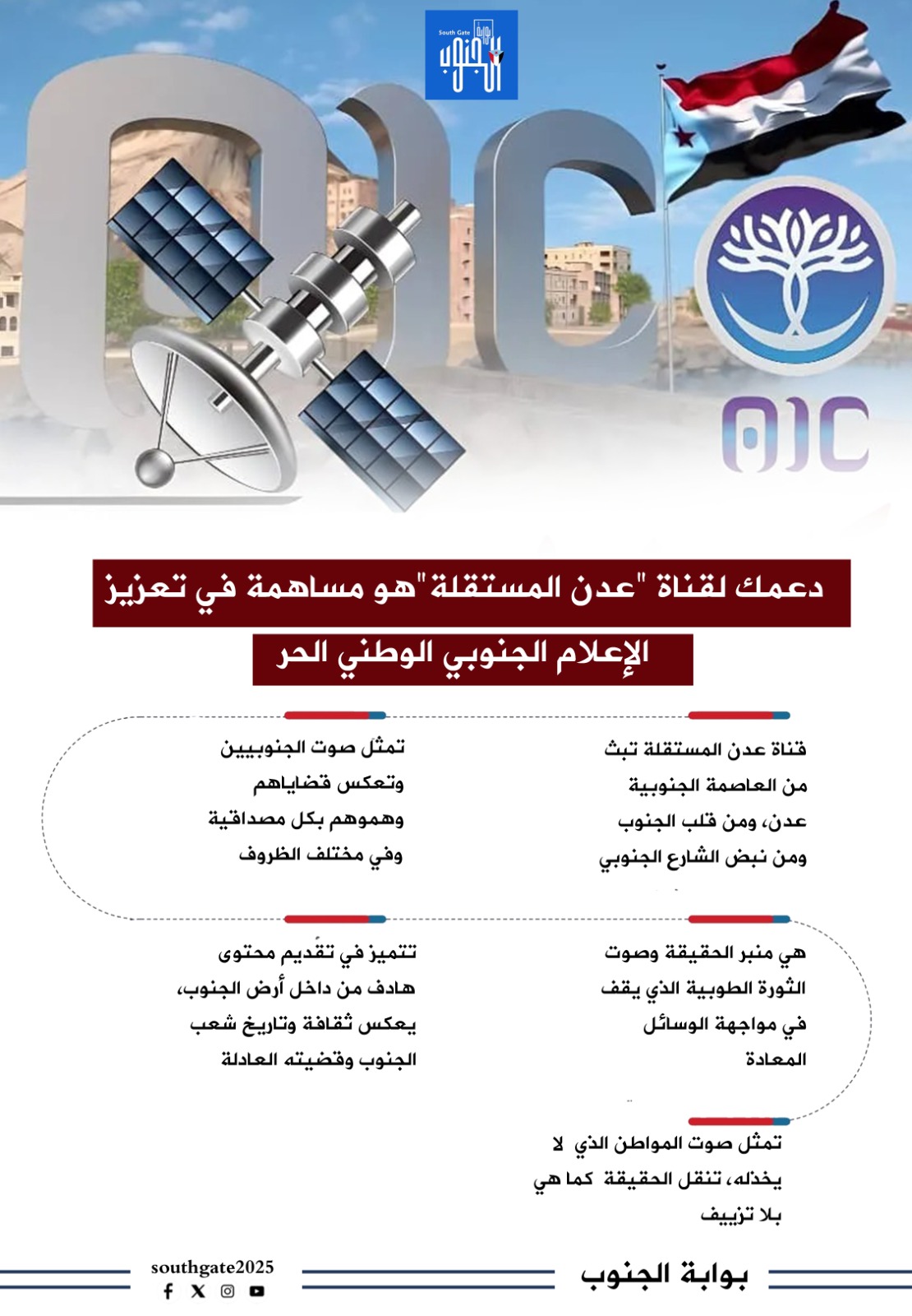 وفي الختام، تبقى قناة عدن المستقلة صرحاً إعلامياً يحمل آمال شعب الجنوب، وموجات أثيرٍ تتجاوز الجغرافيا والحدود، عصية على محاولات التشويه، وصامدة في وجه كل من يحاول كتم صوت الجنوب الحر.ل”””.”ع.ة…ه..ة.ه.:nة