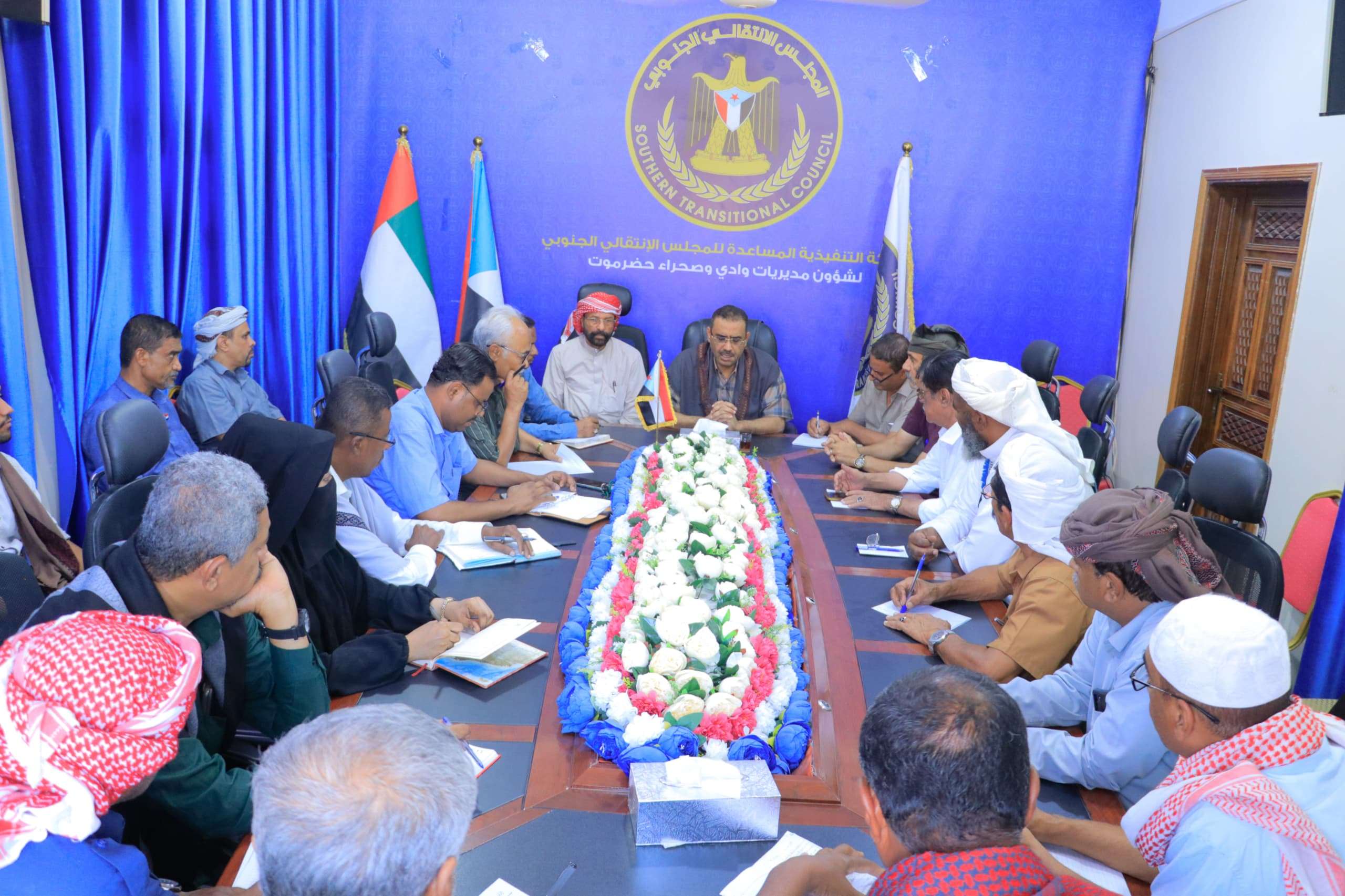 تنفيذية انتقالي وادي وصحراء حضرموت تناقش الأوضاع المعيشية والخدمية بالمديريات