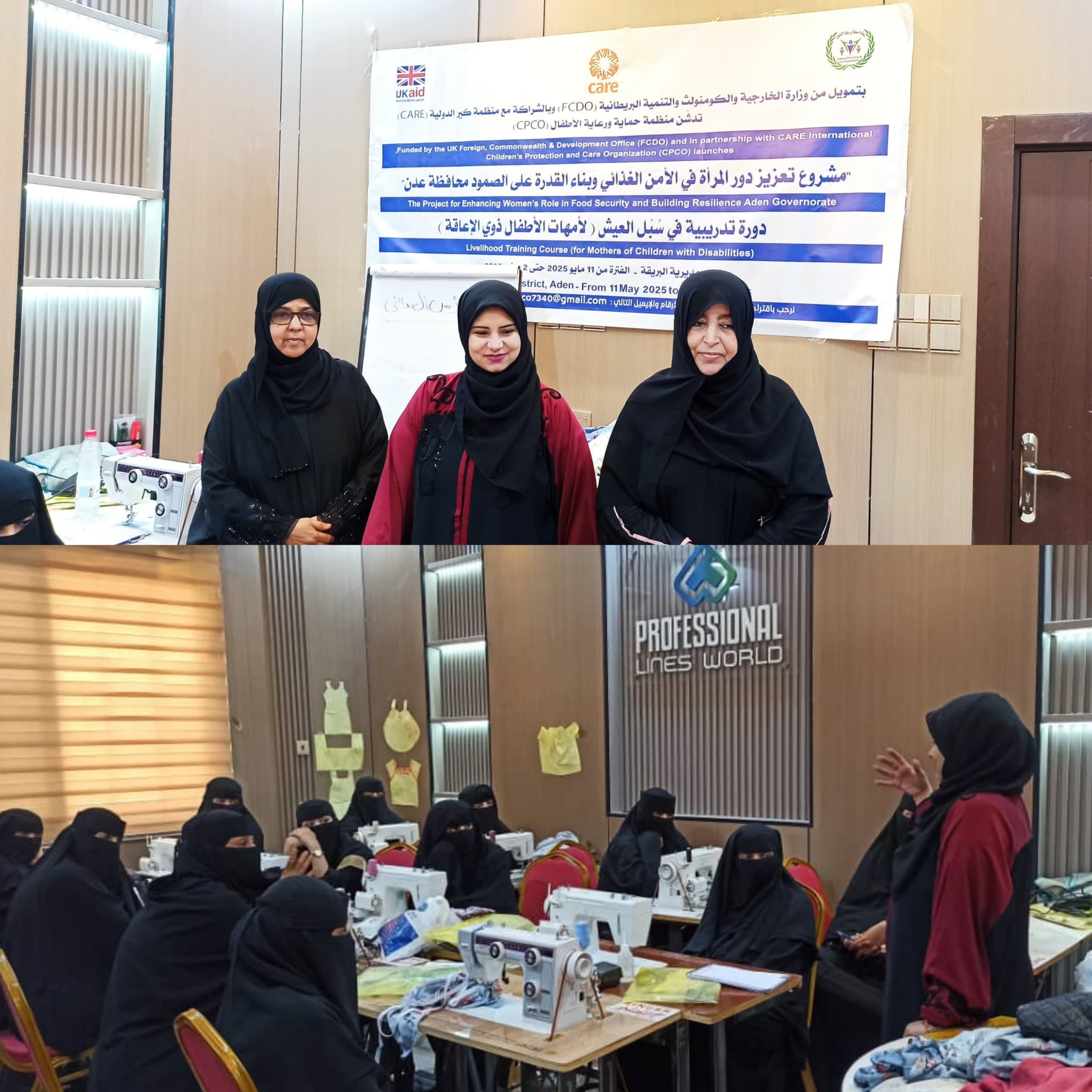 نظمت منظمة حماية ورعاية الأطفال (CPCO ) بالعاصمة عدن محاضرة توعوية حول الأمن الغذائي للمتدربات أمهات الأطفال ذوي الإعاقة اللاتي يتدربون في مجال الخياطة من أجل بناء قدراتهن في سبل العيش وتمكينهن اقتصاديا.