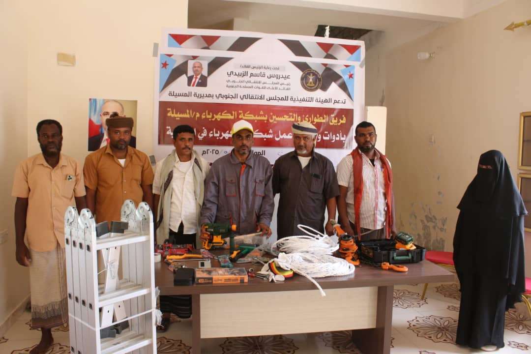 دعمت القيادة المحلية للمجلس الانتقالي الجنوبي في مديرية المسيلة بمحافظة المهرة، اليوم الأحد، مشروع صيانة كهرباء المديرية، بعدد من الأدوات والمعدات.