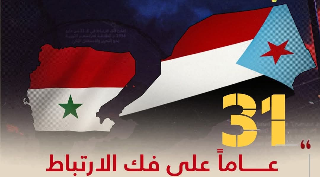 يحتفل شعب الجنوب بالذكرى ال ” 31″ لإعلان فك الارتباط عن الجمهورية العربية اليمنية وأنهاء الوحدة المشئومة , حيث أعلن الرئيس الجنوبي السابق علي سالم البيض عشية الحادي والعشرين من مايو 1994م فك الارتباط نتيجة للحرب الظالمة على الجنوب واحتلاله من قبل قوات الاحتلال اليمني في السابع والعشرين من أبريل من العام ذاته , معلناً ان الوحدة انتهت مما أدى الى اجتياح الجنوب والقضاء على كل مقدراته وتهميش كوادره وقياداته العسكرية والأمنية.