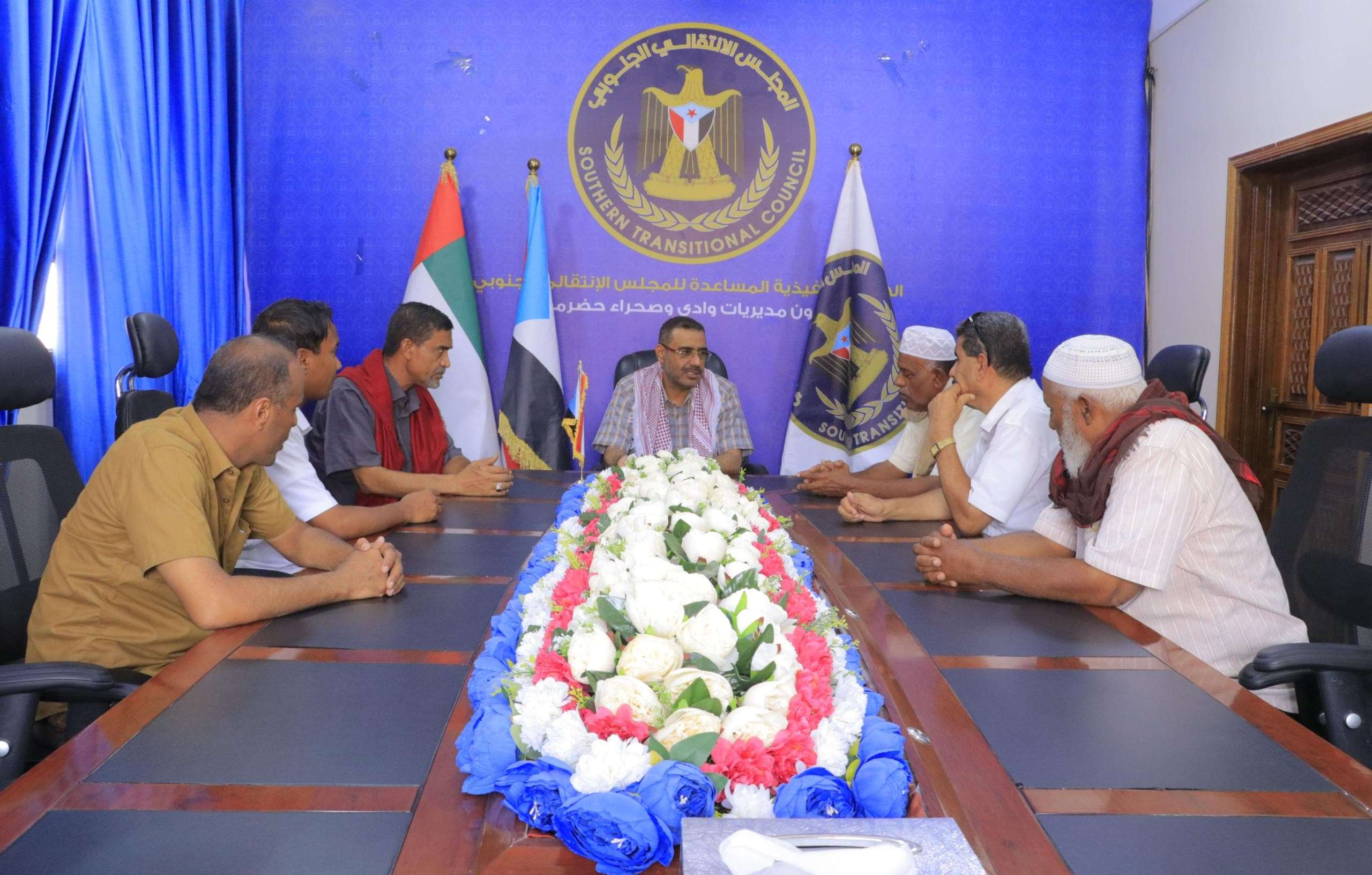 التقى رئيس الهيئة التنفيذية المساعدة للمجلس الانتقالي الجنوبي لشؤون مديريات وادي وصحراء حضرموت، محمد عبدالملك الزبيدي، اليوم الأربعاء، بمقدم حافة السحيل للألعاب الشعبية الشبواني، عمر عبيد ديان، وعدد من أعضاء الحافة.
