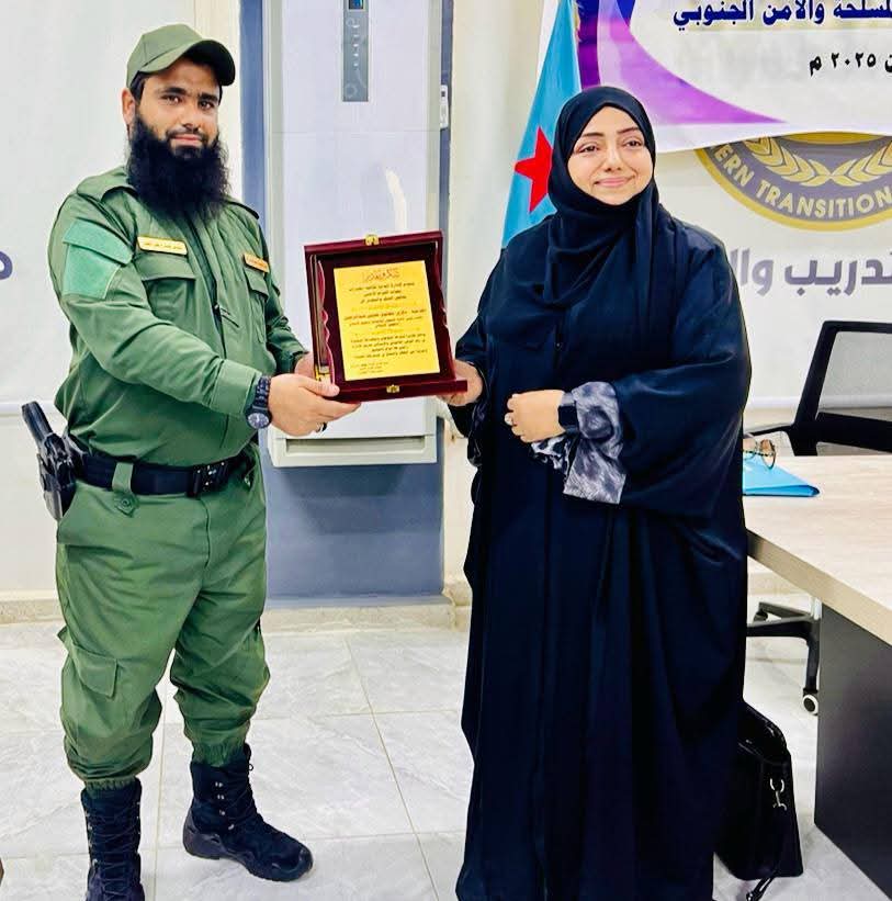 وجاء هذا التكريم تقديرًا للدور التوعوي الذي قدمه القانونيان من خلال سلسلة محاضرات وندوات توعوية استهدفت منتسبي الإدارة العامة لمكافحة المخدرات، تناولت مبادئ القانون الدولي وحقوق الإنسان، وهدفت إلى رفع مستوى الوعي القانوني وتعزيز الأداء المهني لأفراد قوات الحزام الأمني.