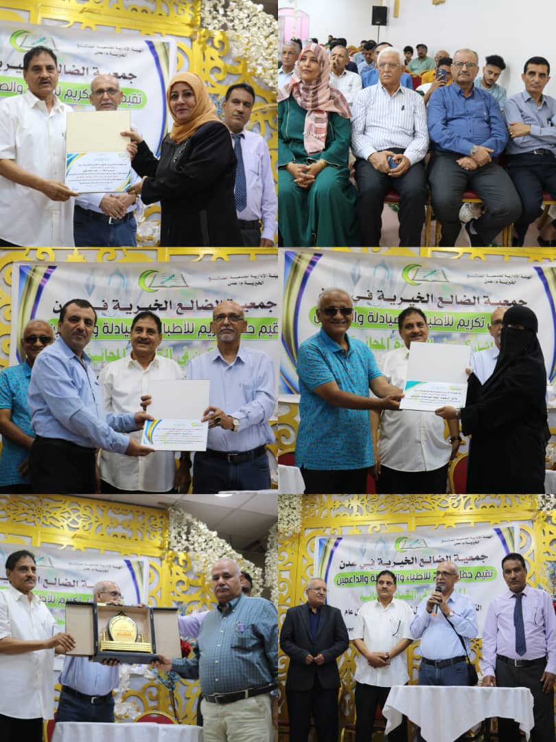 اقيم صباح اليوم في العاصمة عدن حفل خطابي وتكريمي نفدته جمعية الضالع الخيرية في عدن للاطباء والصيادلة و الداعمين المشاركين في العيادة المجانية التي تقام تحت اشرافها خلال شهر رمضان المبارك من كل عام.