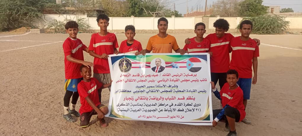 دشن قسم الشباب والرياضة بالهيئة التنفيذية للقيادة المحلية للمجلس الانتقالي بمديرية زنجبار بمحافظة أبين، اليوم الاحد، بملعب مدرسة سواحل بطولة كرة القدم السباعية لمراكز المديرية.