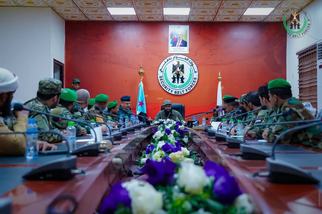 ترأس العميد محسن الوالي، القائد العام لقوات الحزام الأمني، صباح اليوم، اجتماعًا موسعًا ضم قيادة الإدارة العامة للموارد البشرية ومدراء إدارات في الأحزمة الأمنية، وذلك في مقر القيادة العامة بمعسكر الشعب، بحضور العميد عادل الصانبي، مدير الإدارة العامة .
