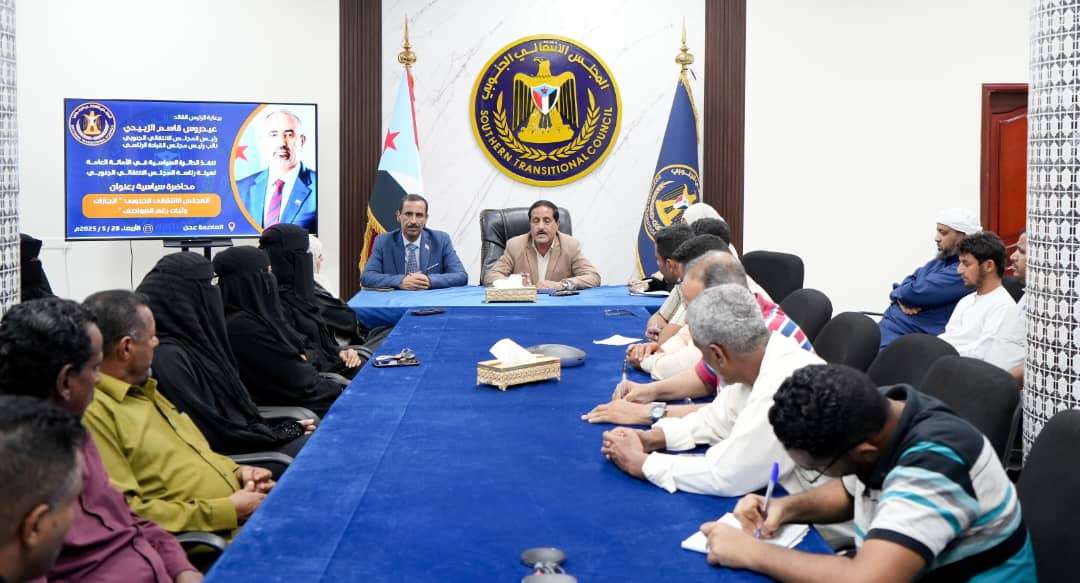 نظمت الدائرة السياسية في الأمانة العامة لهيئة رئاسة المجلس الانتقالي الجنوبي، اليوم الأربعاء، محاضرة توعوية بعنوان “المجلس الانتقالي الجنوبي.. إنجازات وثبات رغم العواصف”.