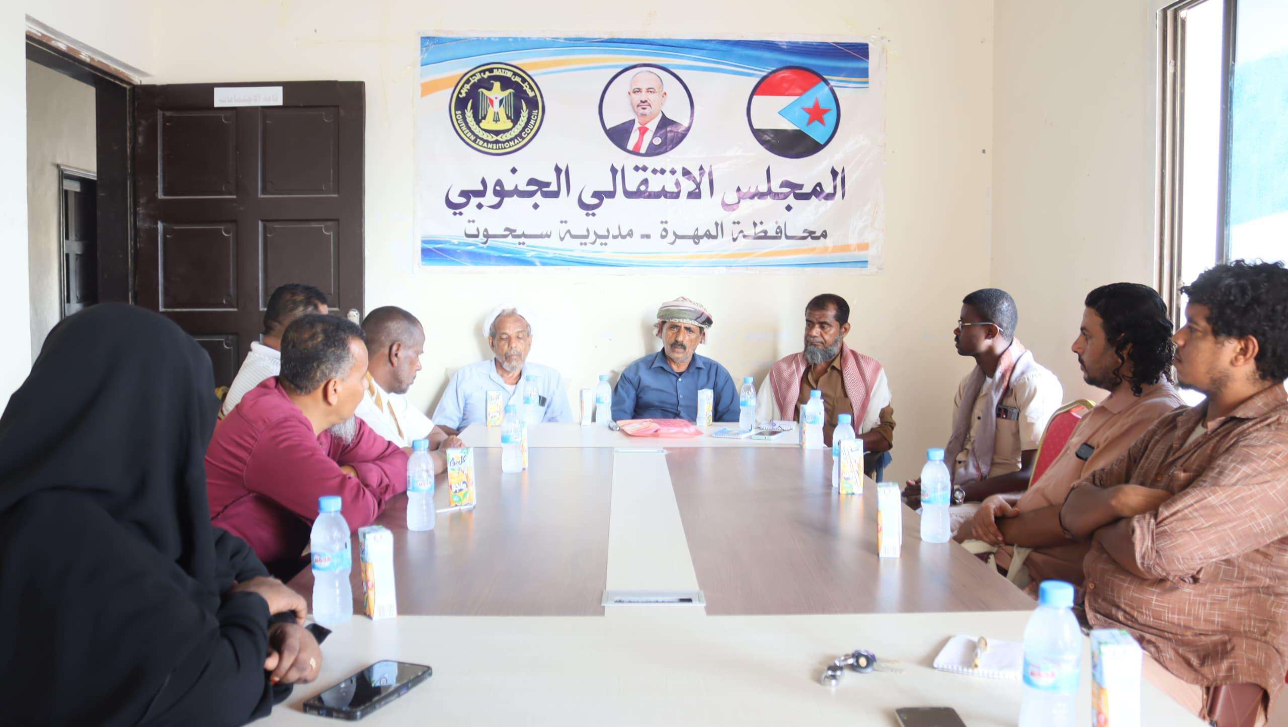 عقدت الهيئة التنفيذية للقيادة المحلية للمجلس الانتقالي الجنوبي في مديرية سيحوت بمحافظة المهرة، اليوم الأحد، اجتماعها الدوري لشهر يونيو، برئاسة رئيس الهيئة، علي جمعان عويّض.