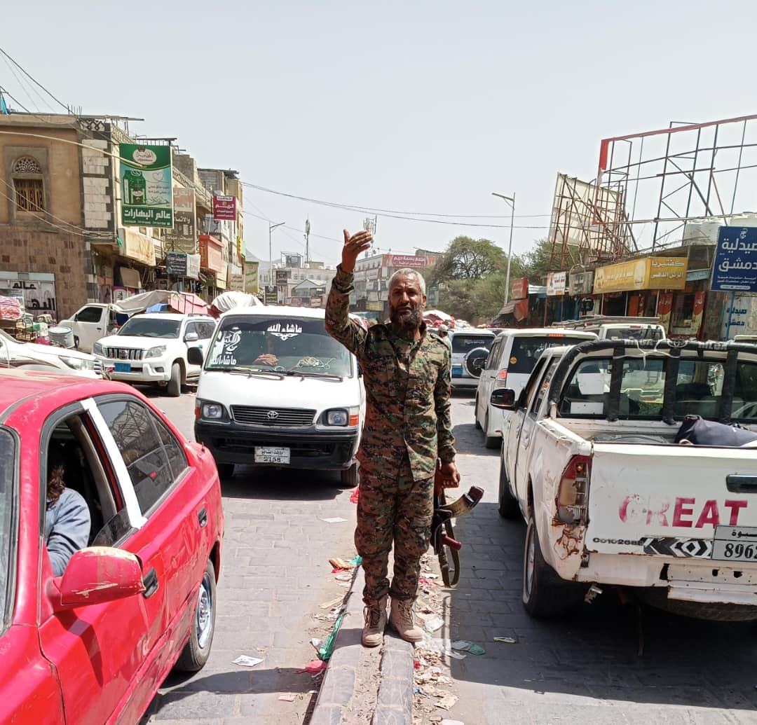 حيث تطوع مع أفراد إدارة الأمن منذ ساعات الصباح الأولى وحتى ذروة الظهيرة، التي تلسع فيها حرارة الشمس، لتنظيم حركة السير في الشارع العام، وسط الفوضى والزحام، مساهماً في تسهيل حركة السيارات والناقلات، وتخفيف العبء على المواطنين.