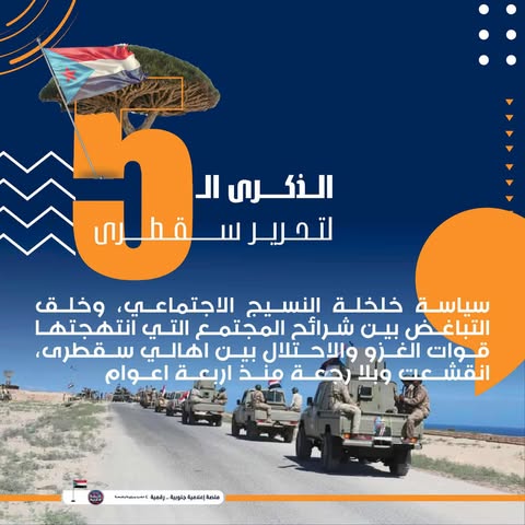في هذا اليوم التاريخي، نستذكر جميعاً أن سقطرى لم تكن مجرد جزيرة تم تحريرها، بل كانت بداية لمرحلة جديدة من الكرامة والسيادة والوحدة الجنوبية.