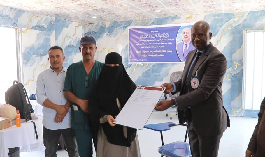 اختتمت اليوم الثلاثاء في مستشفى الشيخ محمد بن زايد الميداني بمحافظة الضالع، أعمال الدورة التدريبية السابعة عشرة الخاصة بالرعاية الأساسية للطوارئ، والتي هدفت إلى تعزيز مهارات الكادر الصحي في كيفية الاقتراب والتعامل مع الحالات الطارئة، واستهدفت الكادر الطبي والتمريضي العامل في المستشفى، إلى جانب عدد من طلاب المعهد الصحي وكلية المجتمع في المحافظة، وبدعم من الهيئة الدولية للصليب الأحمر، ضمن سلسلة دورات تخصصية تهدف إلى رفع قدرات الكوادر الصحية في مختلف التخصصات الطبية.