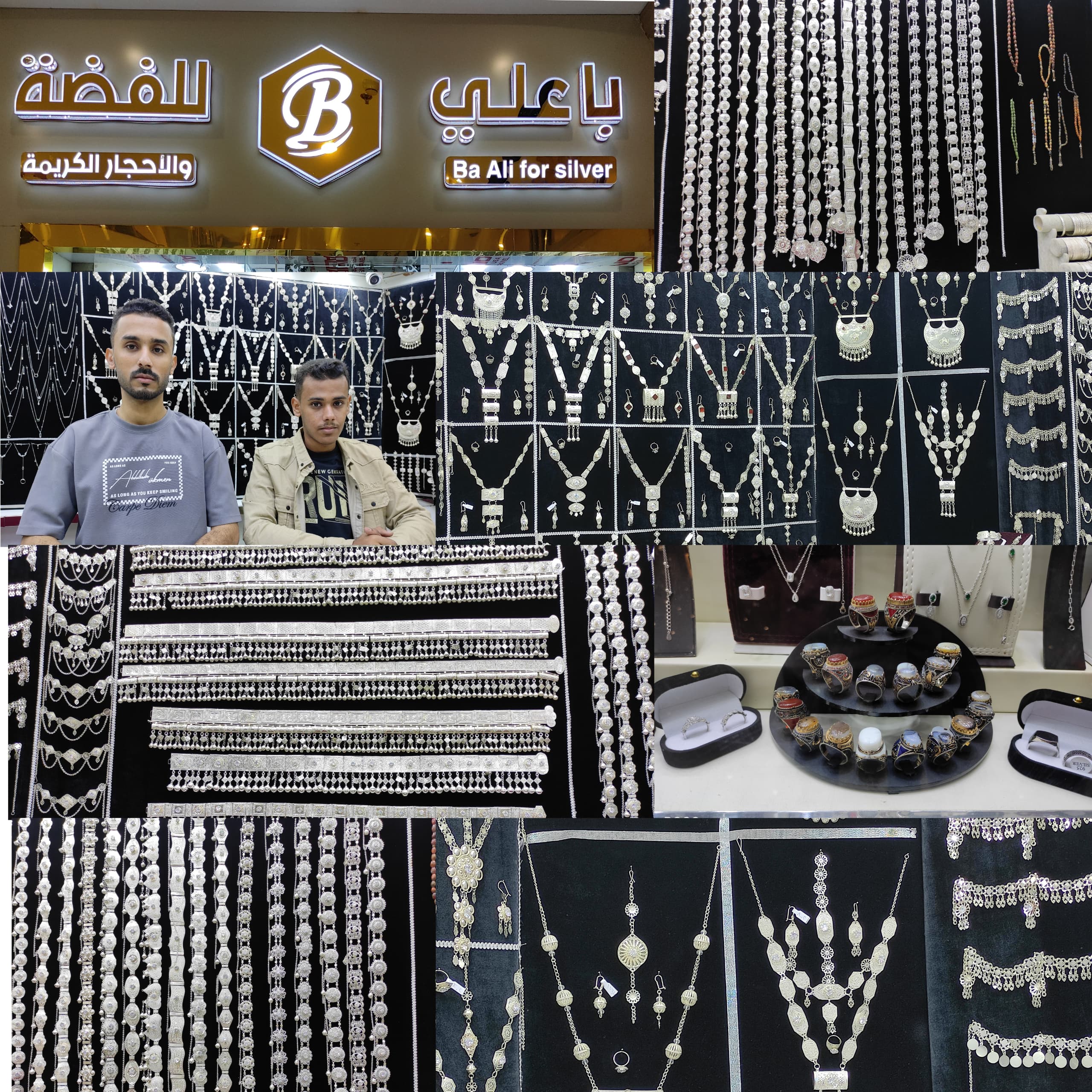 وأضاف قائلًا: “إن محل باعلي للفضة يحتوي على عدد من أطقم فضة الزركون وخواتم فضة الزركون، ومن جميع الأصناف المختلفة والأنواع الأخرى، والأحزمة الشبوانية والحضرمية”.