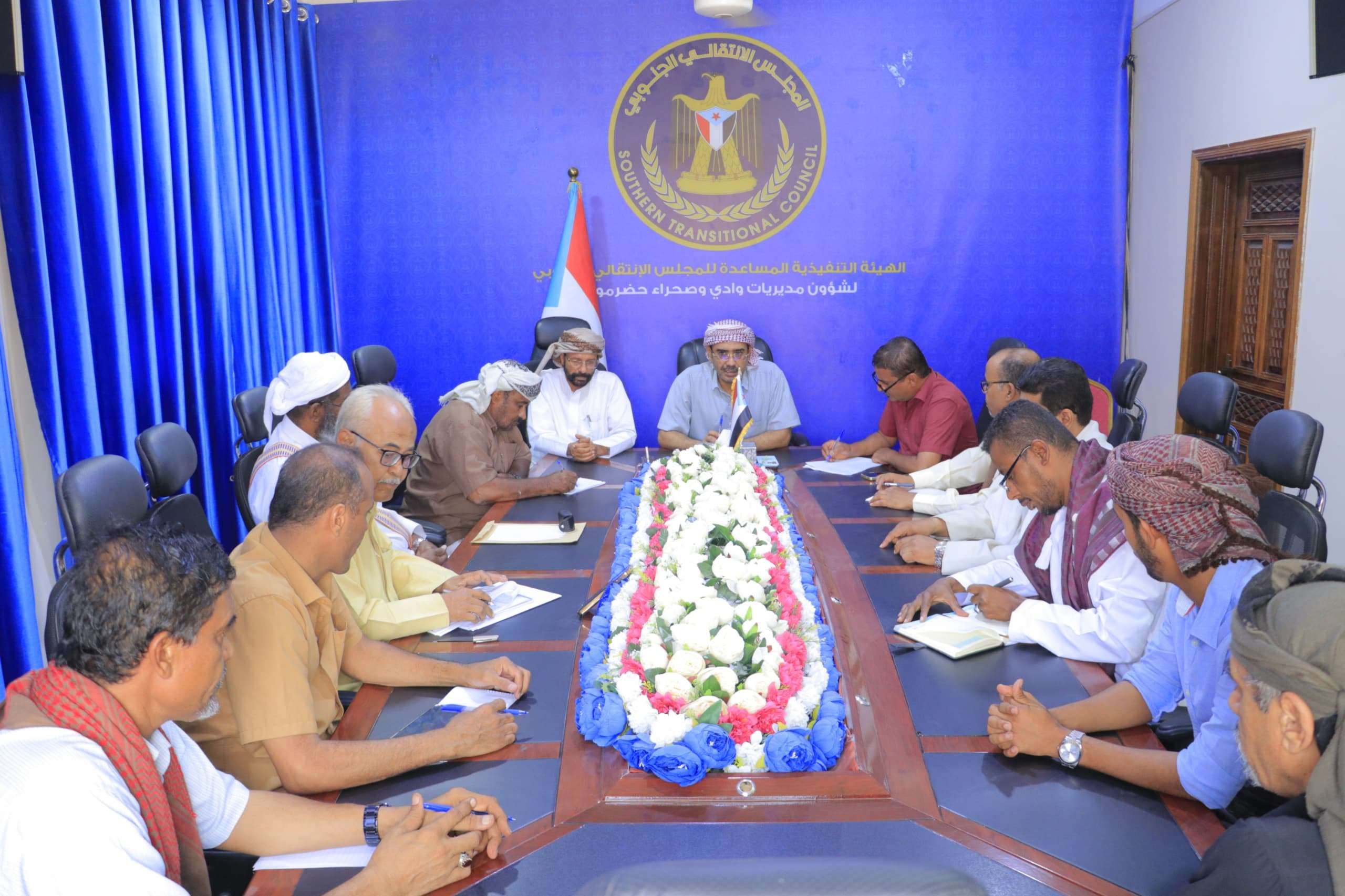 تنفيذية انتقالي وادي وصحراء حضرموت تناقش سير العمل التنظيمي والإداري بالهيئة