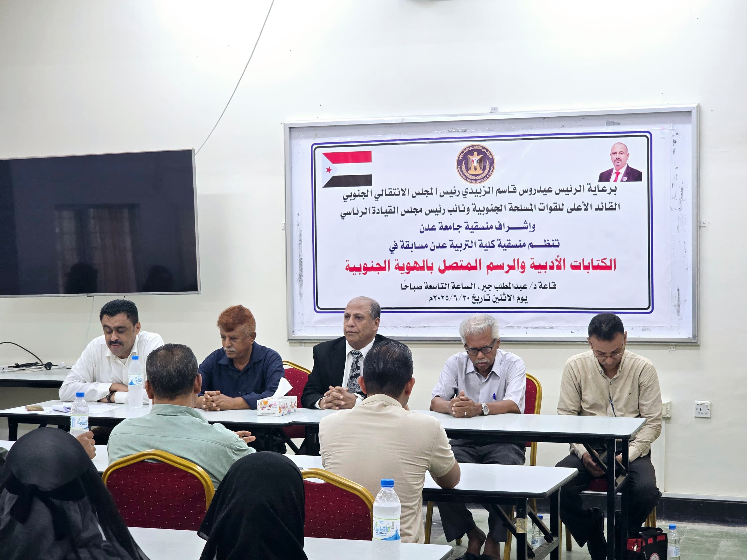 نظمت منسقية انتقالي كلية التربية – جامعة عدن، صباح اليوم الإثنين، مسابقة في “الكتابات الأدبية والرسم المتصل بالهوية الجنوبية”، برعاية الرئيس القائد عيدروس قاسم الزُبيدي، رئيس المجلس الانتقالي الجنوبي، القائد الأعلى للقوات المسلحة الجنوبية، نائب رئيس مجلس القيادة الرئاسي، وبإشراف مباشر من منسقية المجلس الانتقالي بجامعة عدن.
