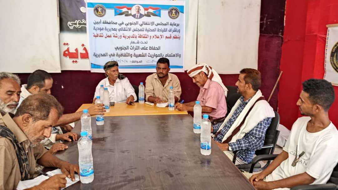 نظم قسم الإعلام والثقافة بالهيئة التنفيذية للقيادة المحلية للمجلس الانتقالي الجنوبي في مديرية مودية بمحافظة أبين، اليوم الاثنين، ورشة عمل ثقافية بعنوان “الحفاظ على التراث الجنوبي الأصيل والاهتمام بالموروث الشعبي والثقافي في المديرية”، استهدفت نخبة من الإعلاميين والمثقفين والناشطين المجتمعيين في المديرية.