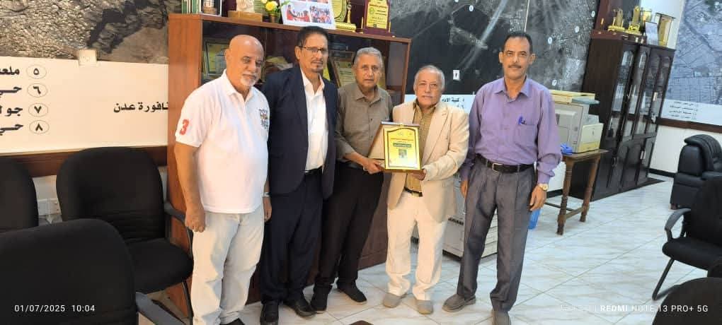 وقدّمت النقابة خلال الزيارة درعاً تكريمياً للمهندس قائد راشد أنعم، في بادرة شكر “وإن تأخرت” إلا أنها جاءت لتؤكد أن الوفاء لا يسقط بالتقادم، وأن من يزرع الخير يُذكر بالخير.