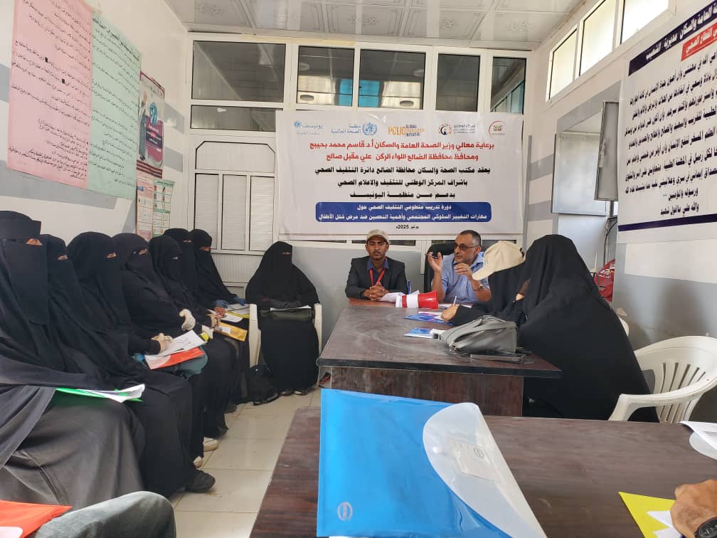 برعاية وزارة الصحة العامة والسكان وبإشراف المركز الوطني للتثقيف والإعلام الصحي، وبدعم من منظمة اليونيسف والصحة العالميه نظم مكتب الصحة والسكان بمديرية الشعيب الدورة التدريبية الخاصة بمتطوعي التثقيف الصحي، والتي ركزت على مهارات التغيير السلوكي المجتمعي وأهمية التحصين ضد مرض شلل الأطفال.