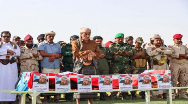وتقدم المشيعون نائب محافظ شبوة، عبدربه هشله ناصر، الذي نقل تعازي محافظ المحافظة الشيخ عوض بن الوزير العولقي إلى أسرة الشهيد، مؤكداً أن هذه الأعمال الإرهابية لن تثني القوات الأمنية والعسكرية عن مواصلة جهودها في مكافحة الإرهاب.