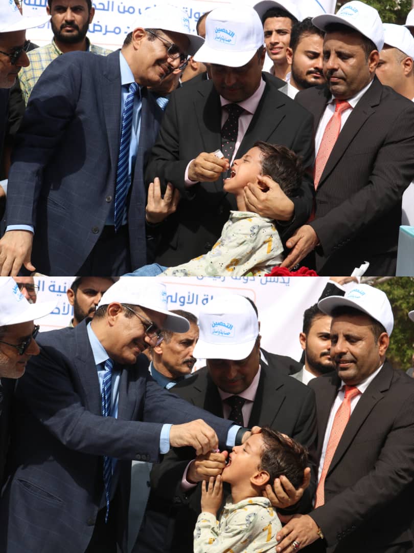 دولة رئيس الوزراء و معالي وزير الصحة يدشنان حملة التطعيم الطارئة ضد الفيروس القاتل المسبب لشلل الاطفال