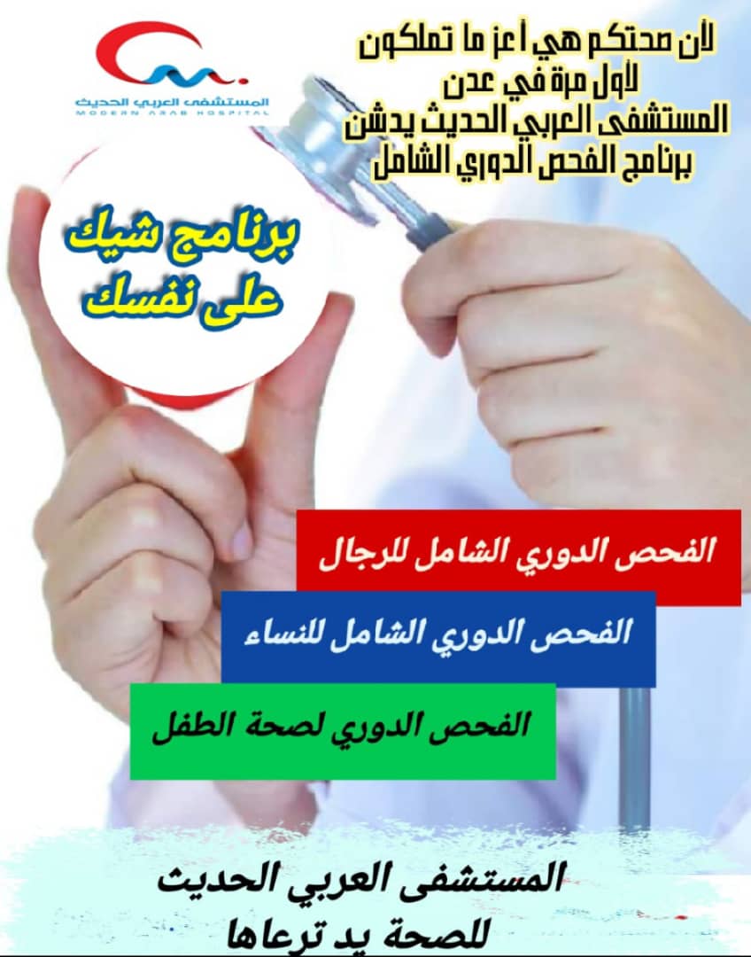 و لأن ثقافة الطب الوقائي و صحة المواطنين تهم إدارة المستشفى العربي الحديث قدم فريق المشفى للجمهور “برنامج شيك على نفسك” للفحص الدوري الشامل للكشف المبكر عن الأمراض المزمنة