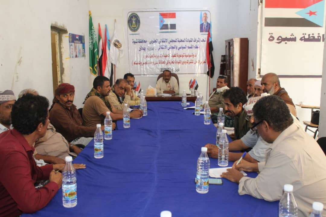 انتقالي بيحان ينظم ندوة سياسية توعوية لأعضاء القيادة المحلية بالمديرية