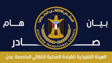 بيان تنديد وتضامن صادر عن الهيئة التنفيذية للقيادة المحلية للمجلس الانتقالي الجنوبي بالعاصمة عدن